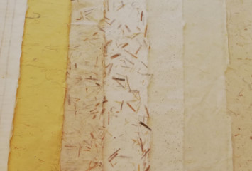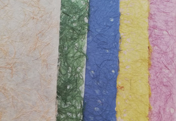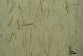 椰子絲和椰子殻屑佈滿紙張,強而粗糙的紙感完全 呈現手工紙的特性。 |